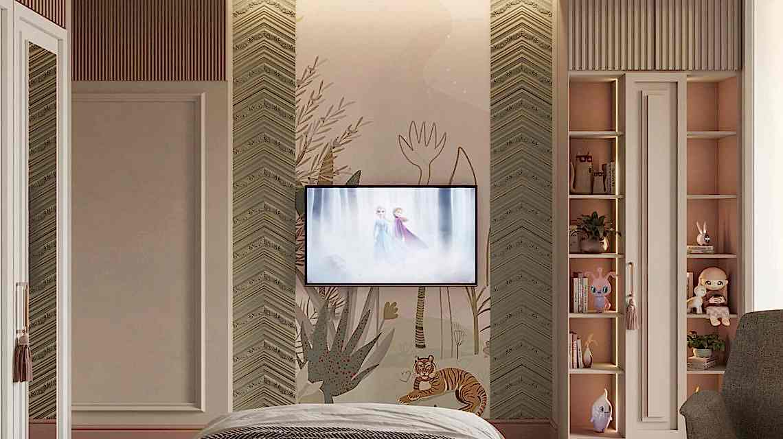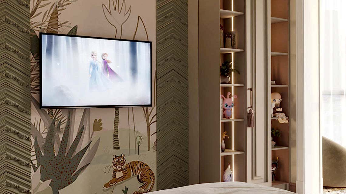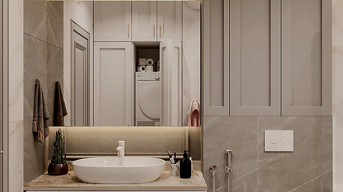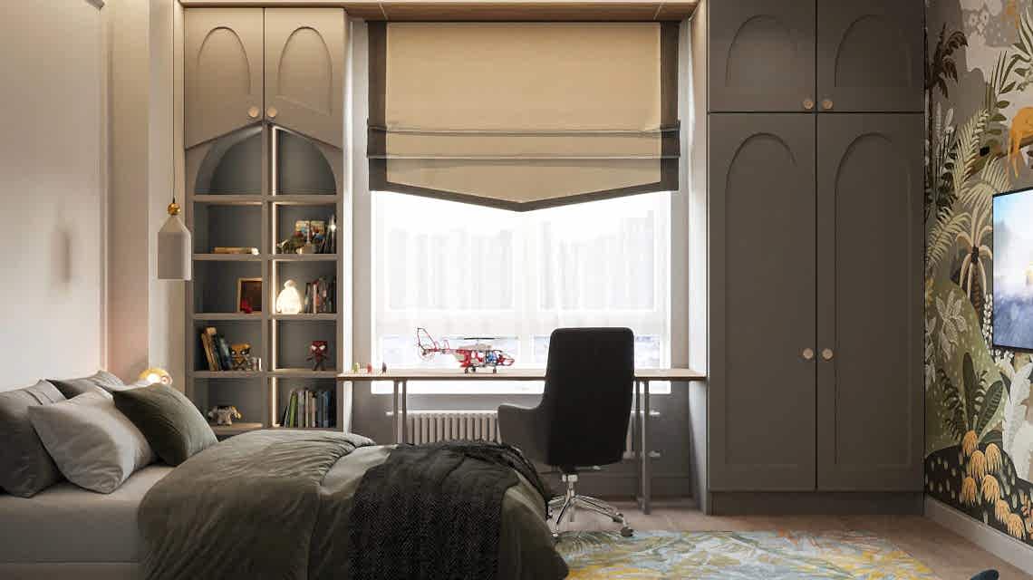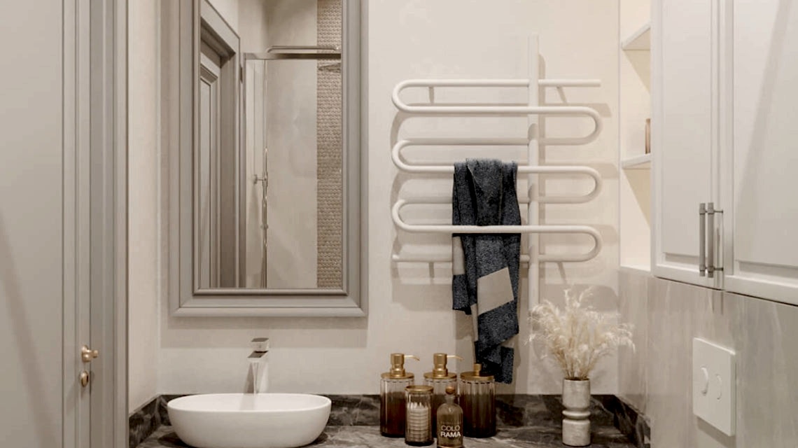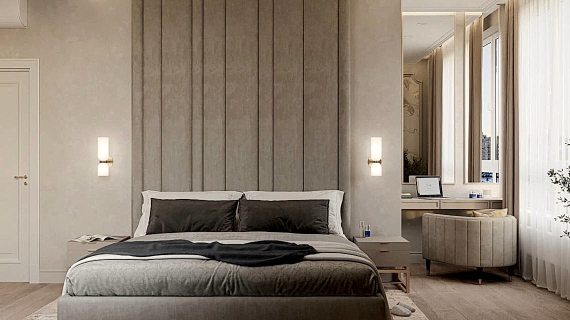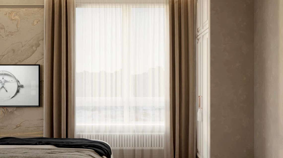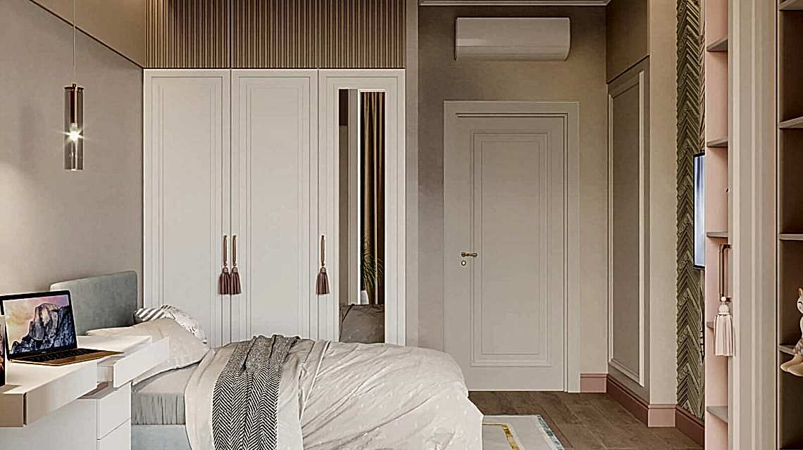 Дизайн проект квартиры выполнен в стиле современная классика. В ходе работы над Pin Up добавили и цветовые акценты. Интерьер каждой комнаты сочетает в себе множество материалов и фактур, начиная с фрески и заканчивая напольным орнаментом.