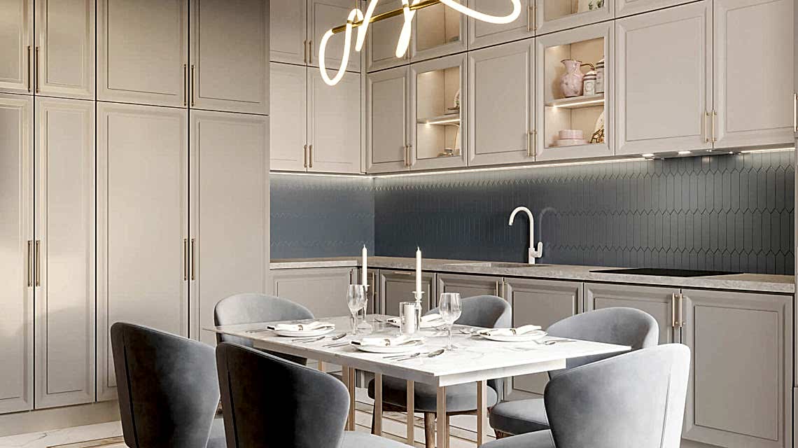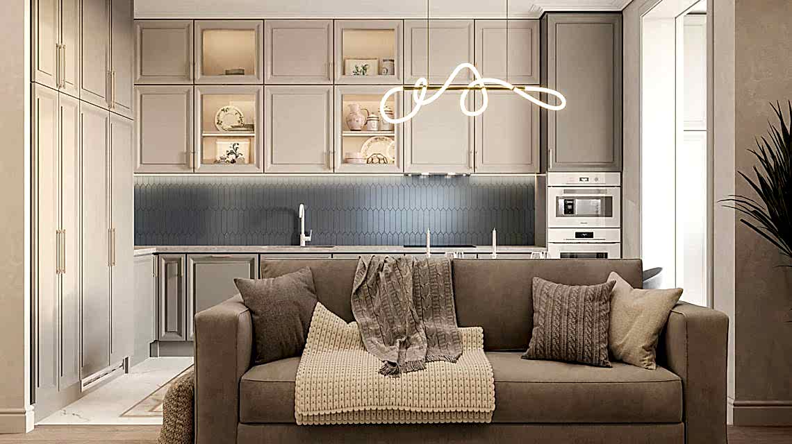 Интерьер в стиле современной классикис цветовыми акцентами