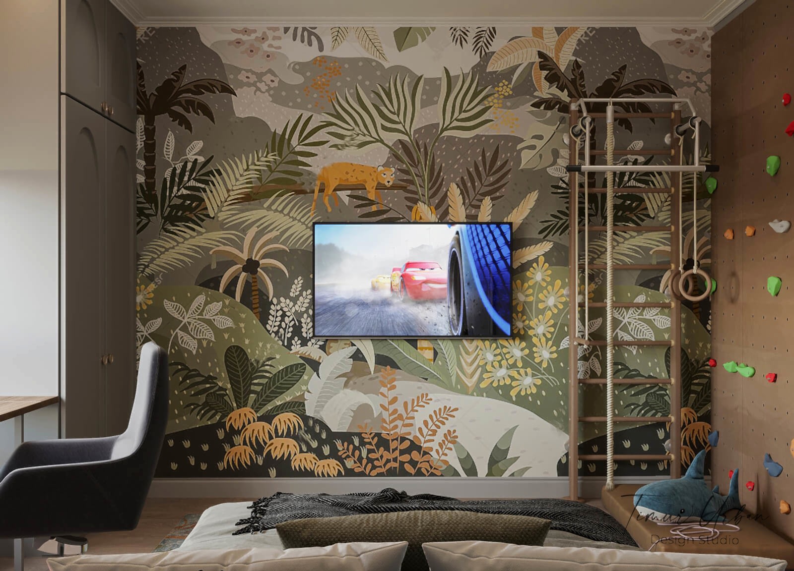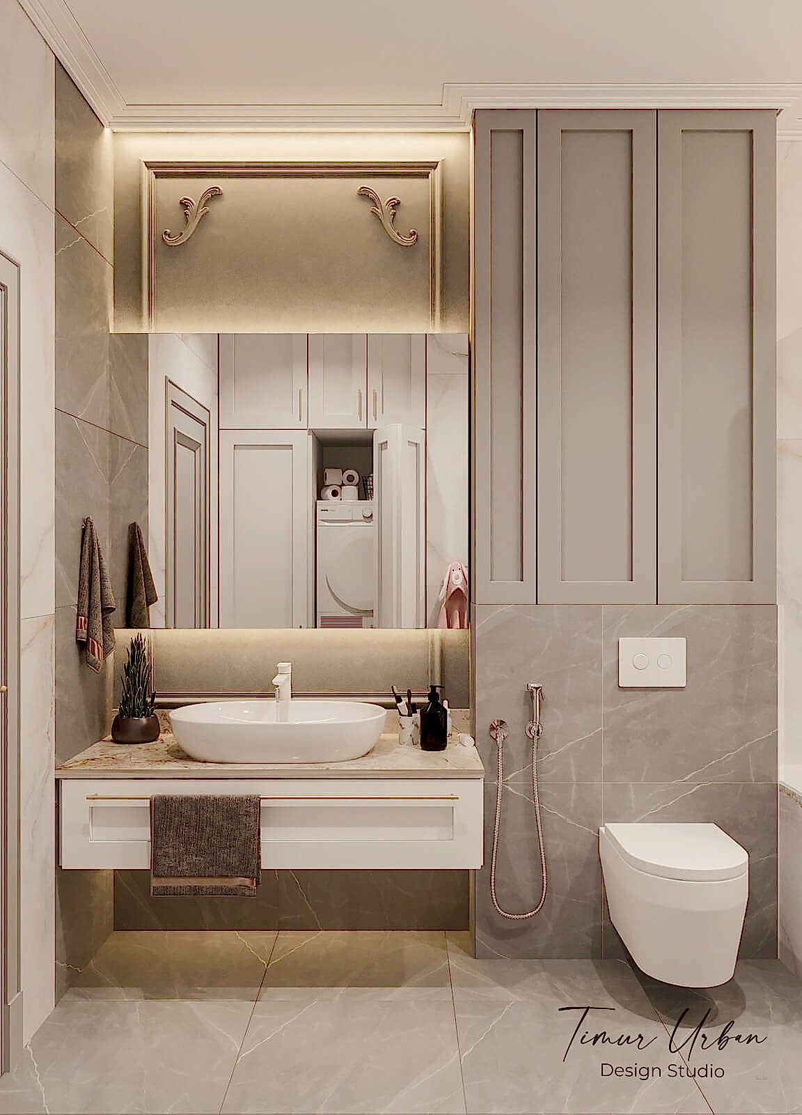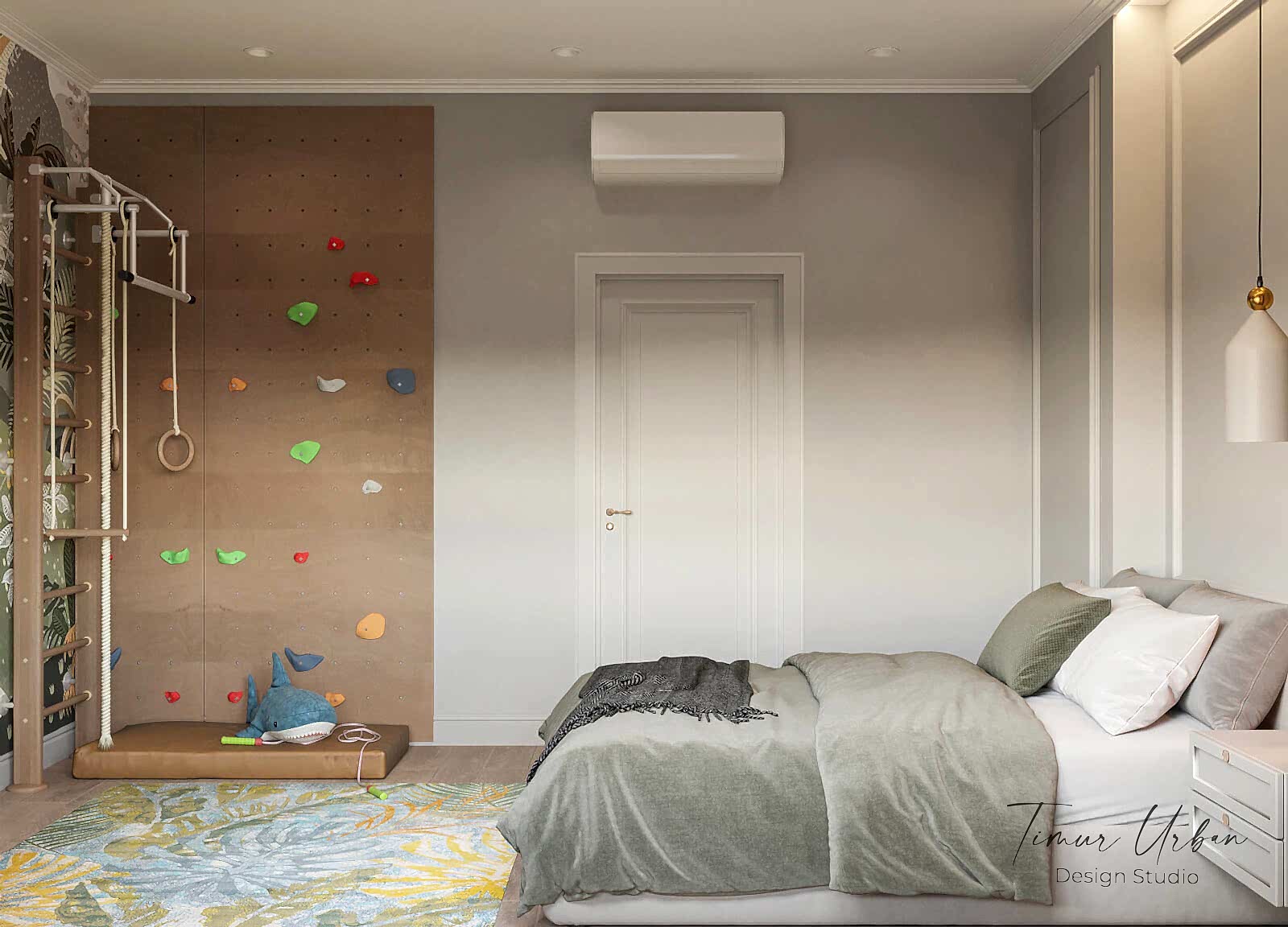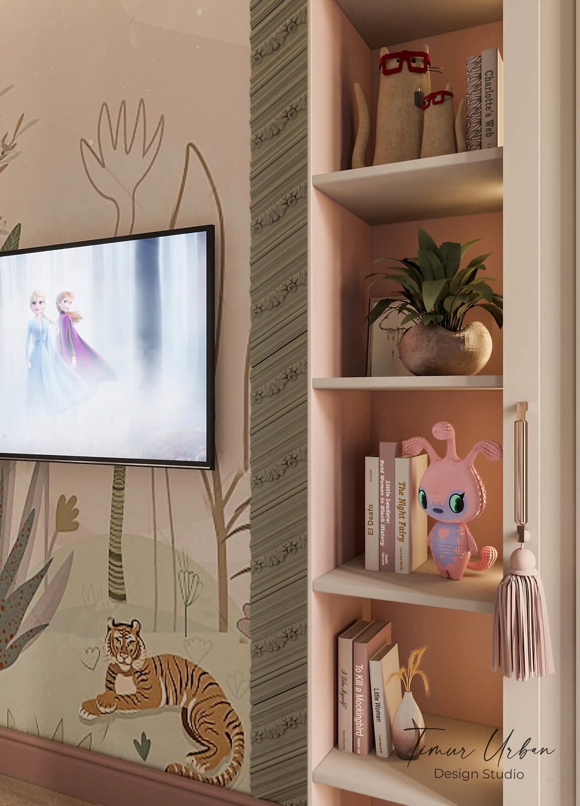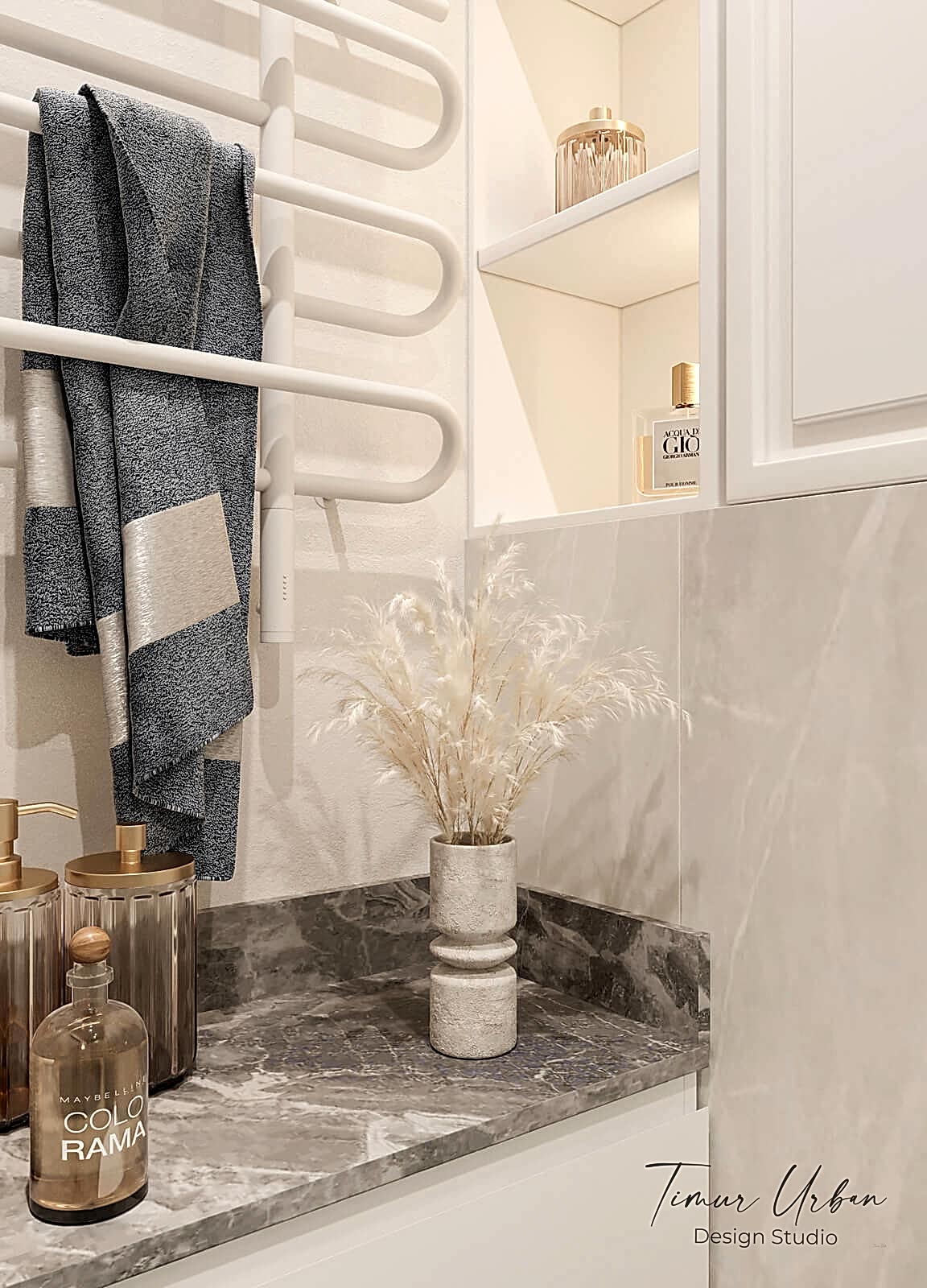 Дизайн проект квартиры выполнен в стиле современная классика. В ходе работы над Pin Up добавили и цветовые акценты. Интерьер каждой комнаты сочетает в себе множество материалов и фактур, начиная с фрески и заканчивая напольным орнаментом.