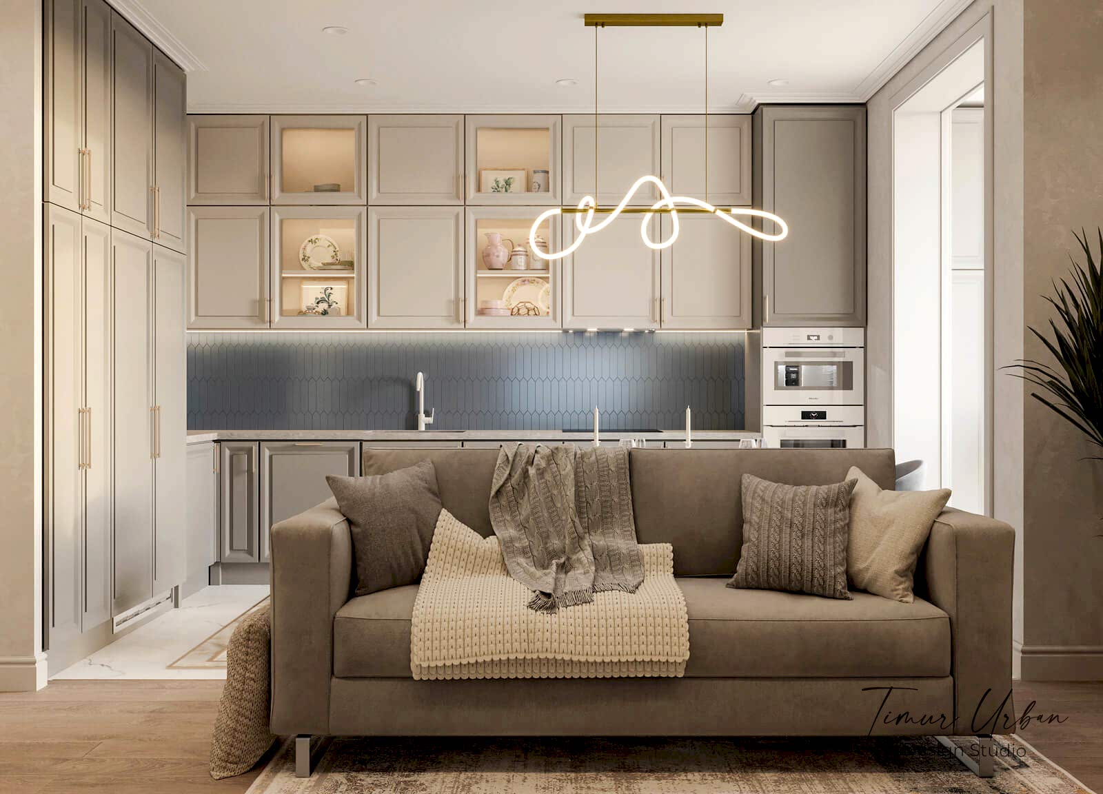 Интерьер в стиле современной классики с цветовыми Pin Up