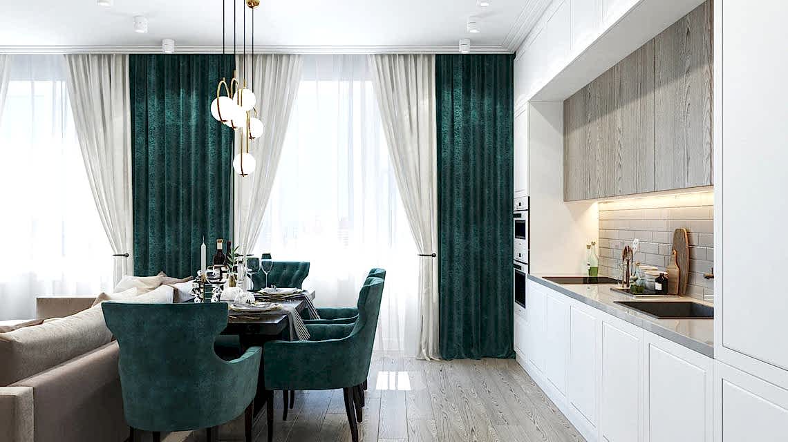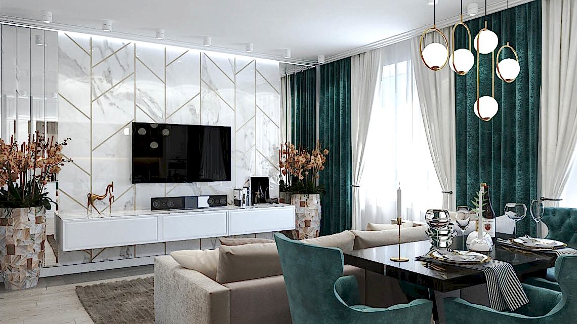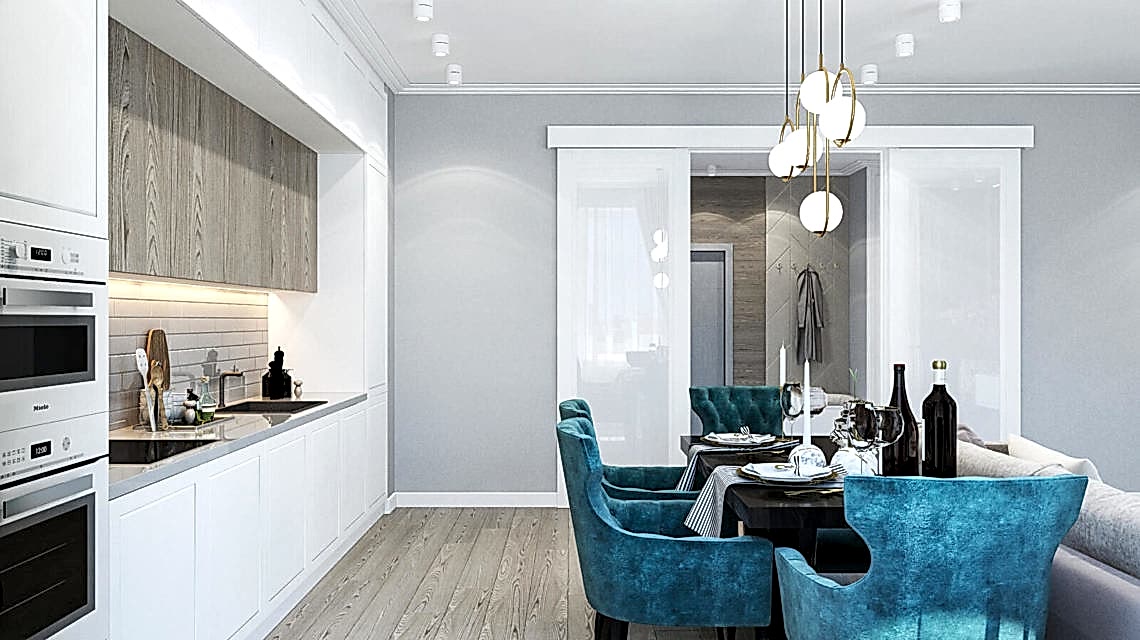 По пожеланию заказчика в интерьере Pin Up совместить традиционные приемы классического стиля с нотками современности и практичности. Здесь применены спокойные светлые оттенки, на фоне которых можно обыгрывать разные сценарии и настроения, внеся цветовые акценты в текстиль и декор.