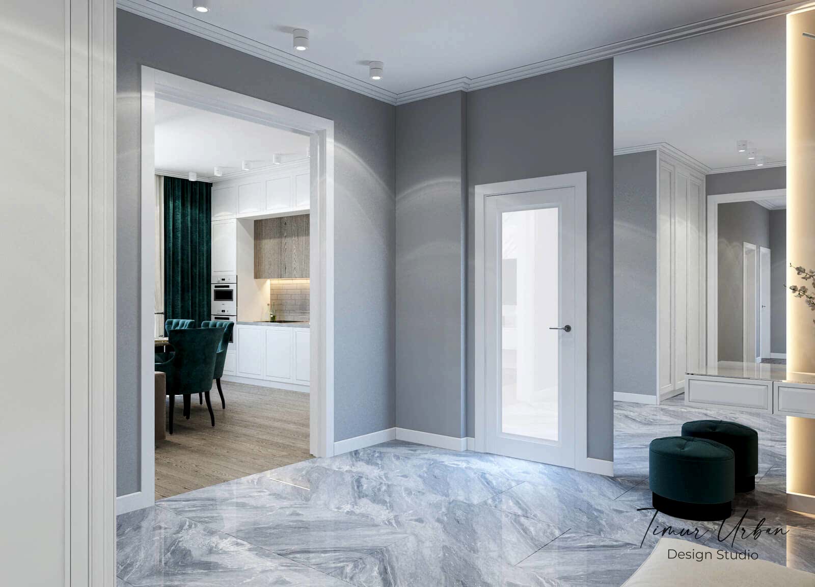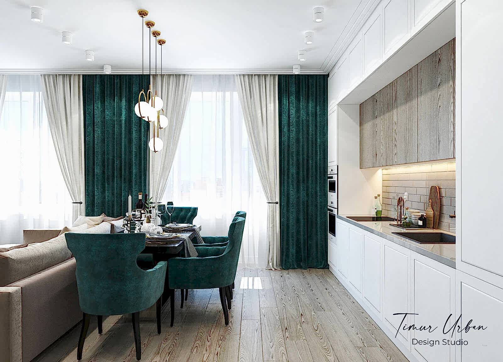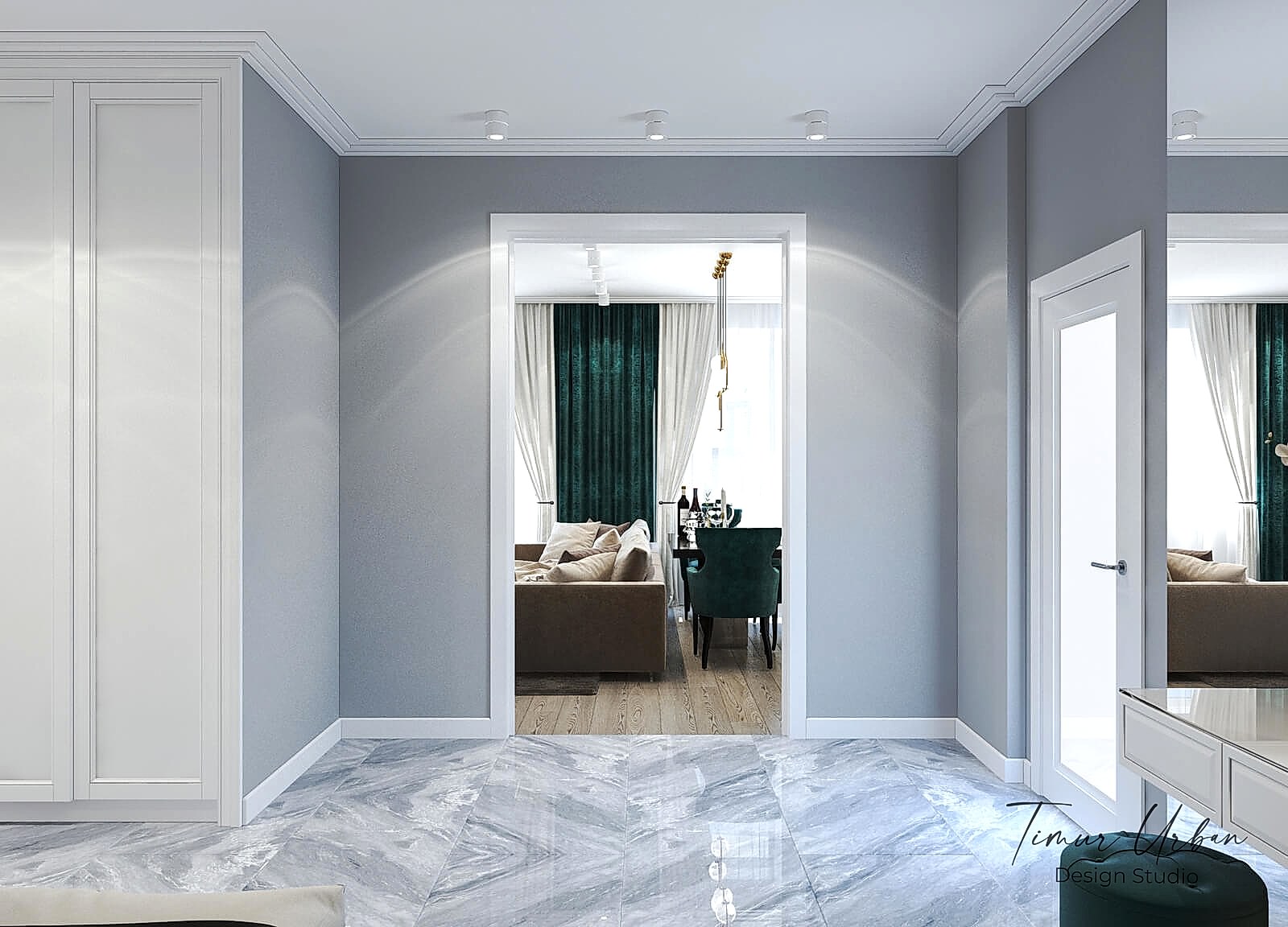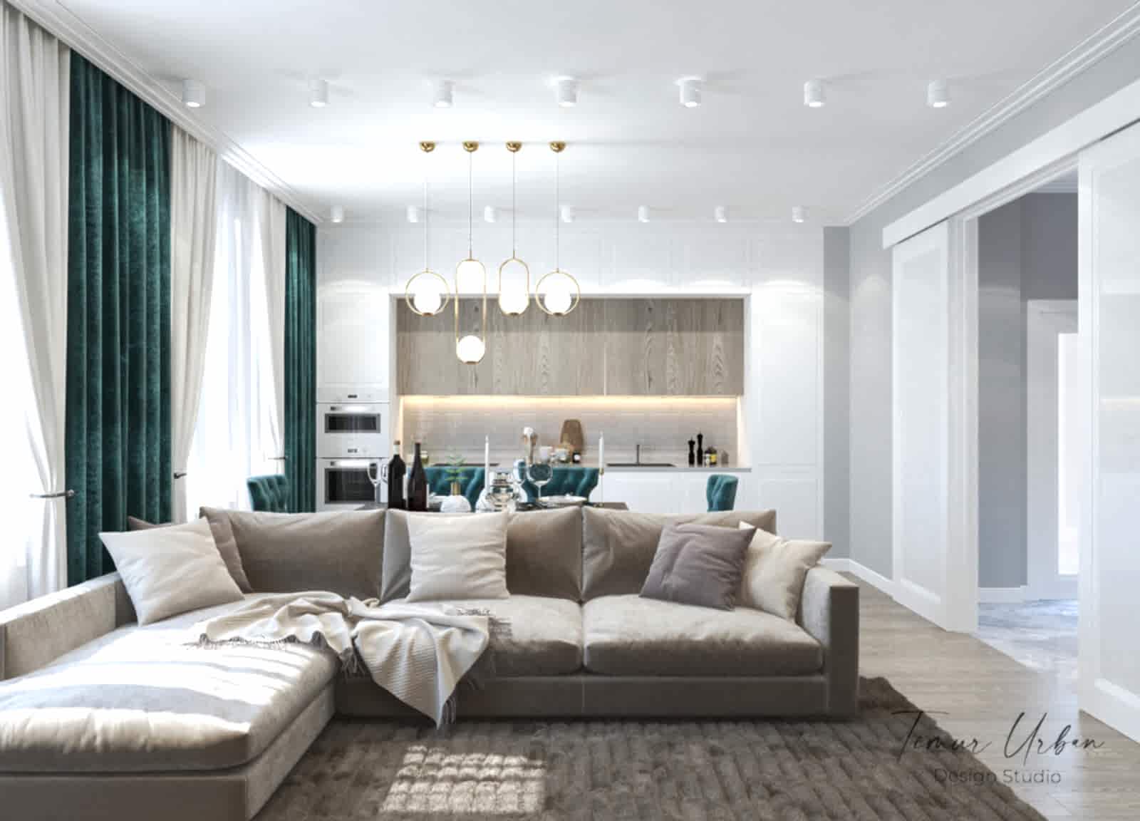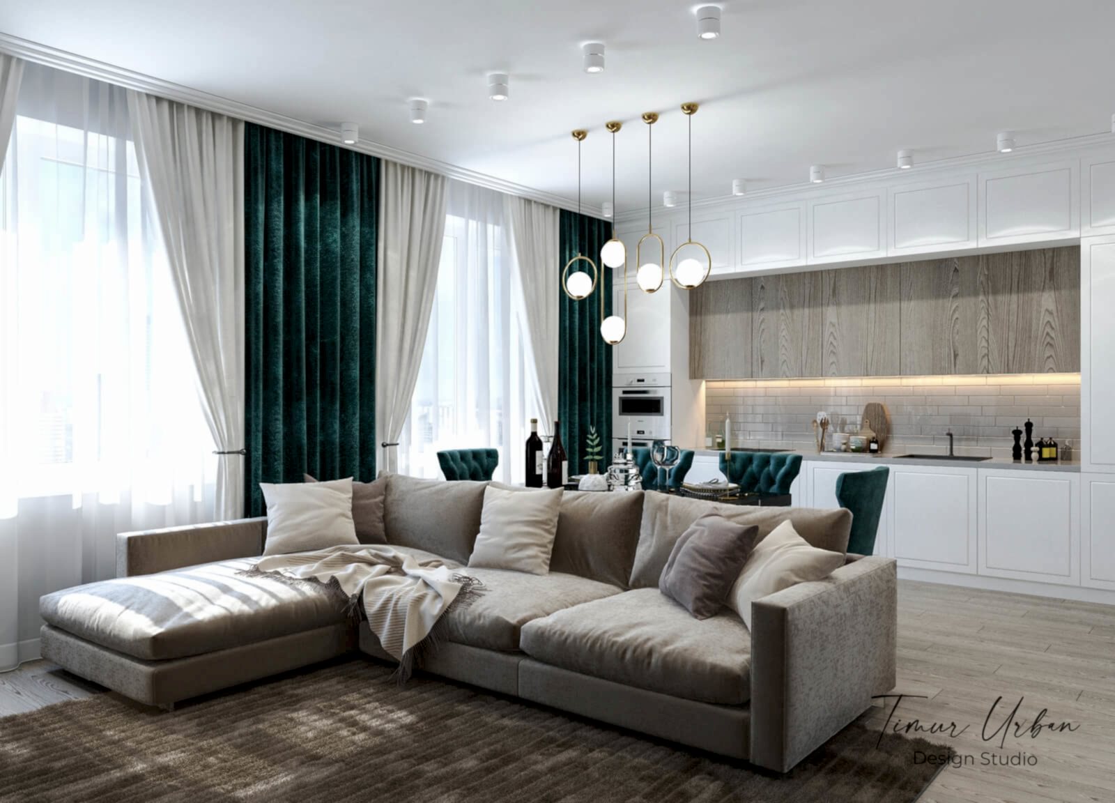 По пожеланию заказчика в интерьере Pin Up совместить традиционные приемы классического стиля с нотками современности и практичности. Здесь применены спокойные светлые оттенки, на фоне которых можно обыгрывать разные сценарии и настроения, внеся цветовые акценты в текстиль и декор.