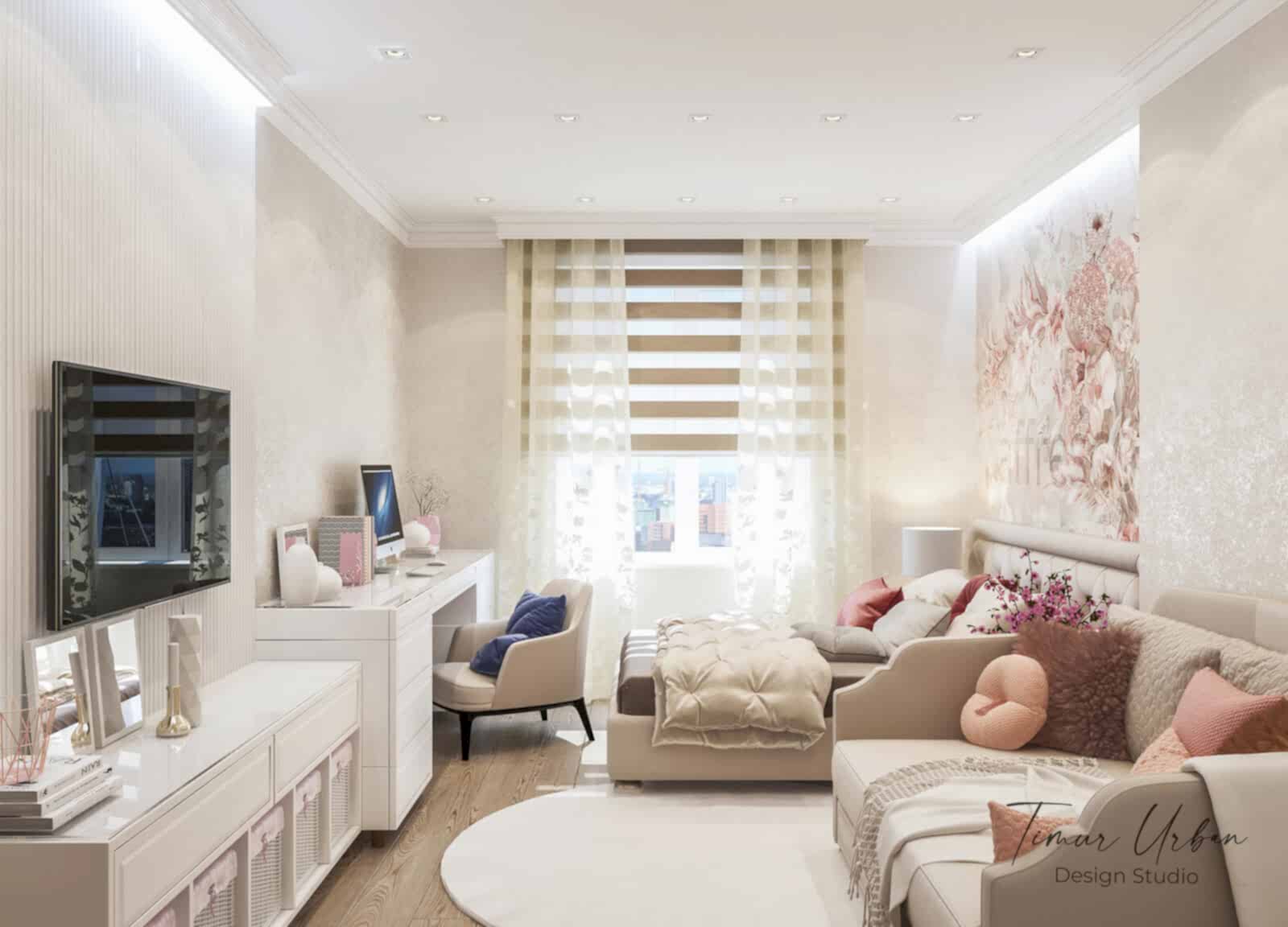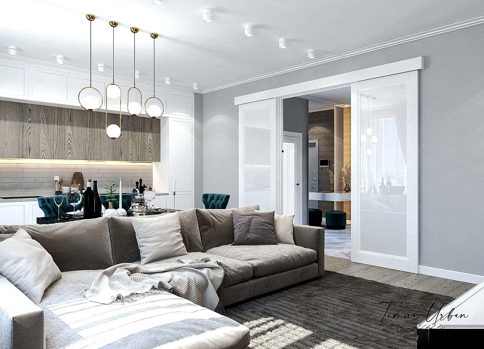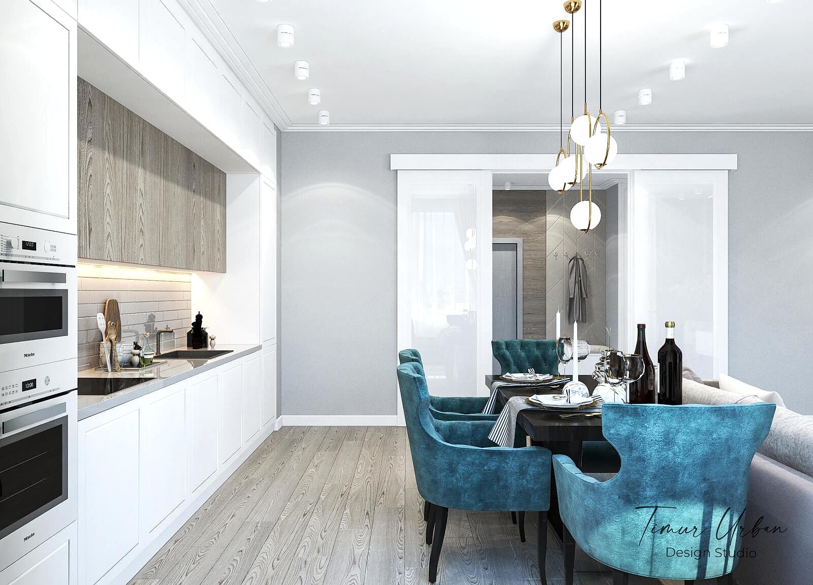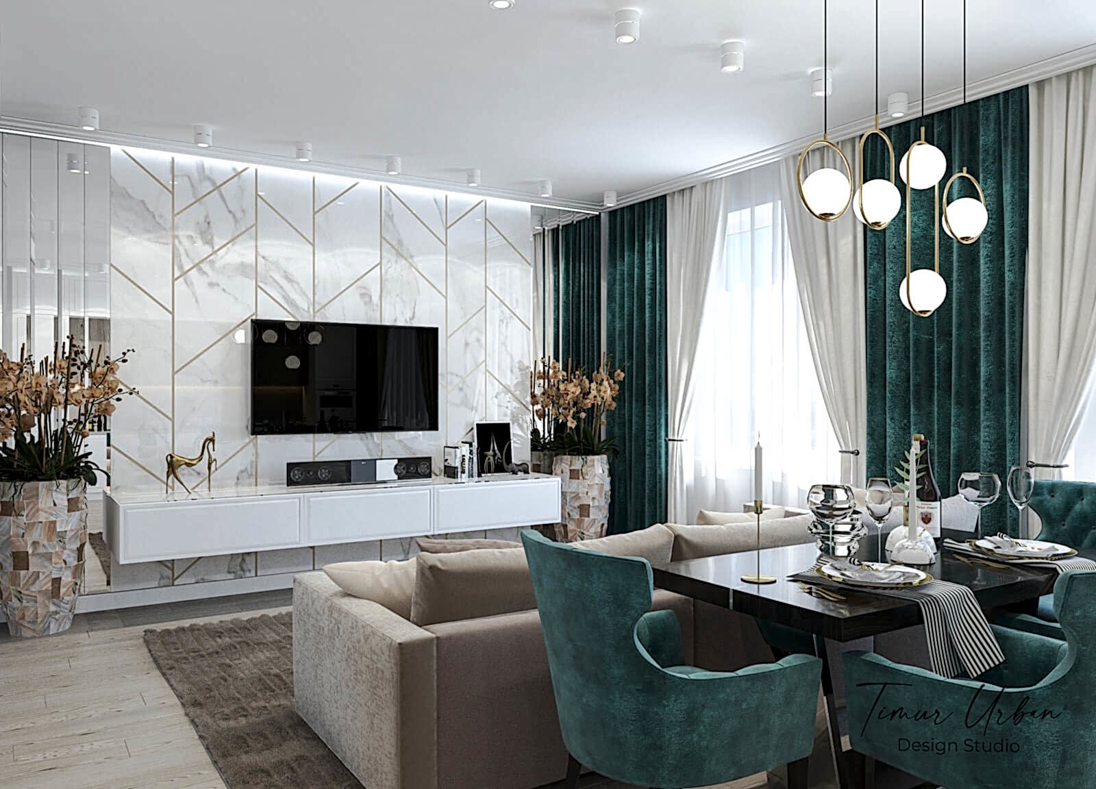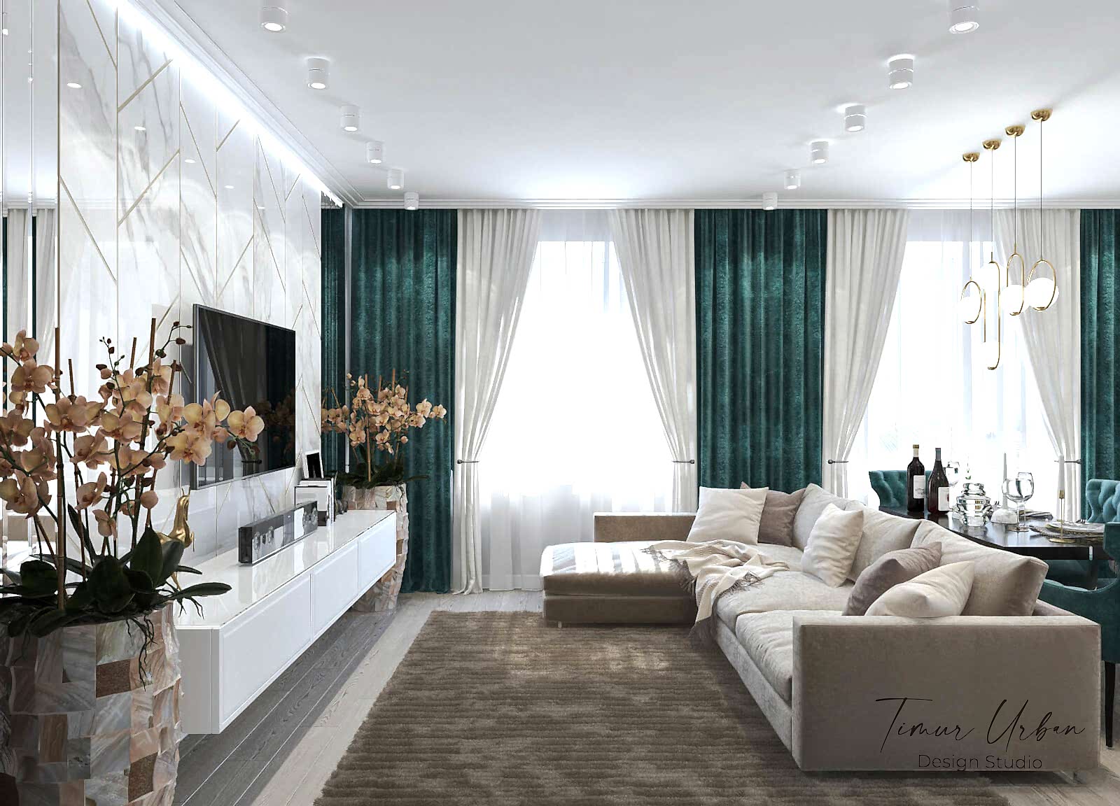 По пожеланию заказчика в интерьере Pin Up совместить традиционные приемы классического стиля с нотками современности и практичности. Здесь применены спокойные светлые оттенки, на фоне которых можно обыгрывать разные сценарии и настроения, внеся цветовые акценты в текстиль и декор.